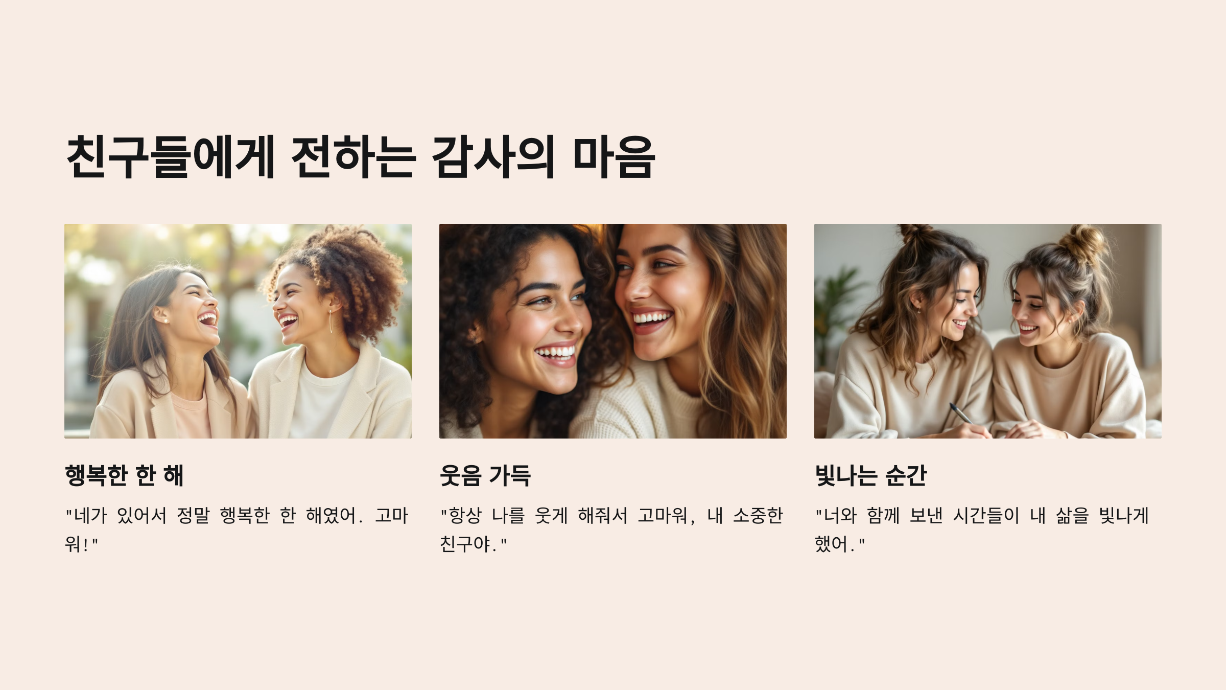 “한 해 동안 사랑과 격려를 아끼지 않아줘서 고마워요.”